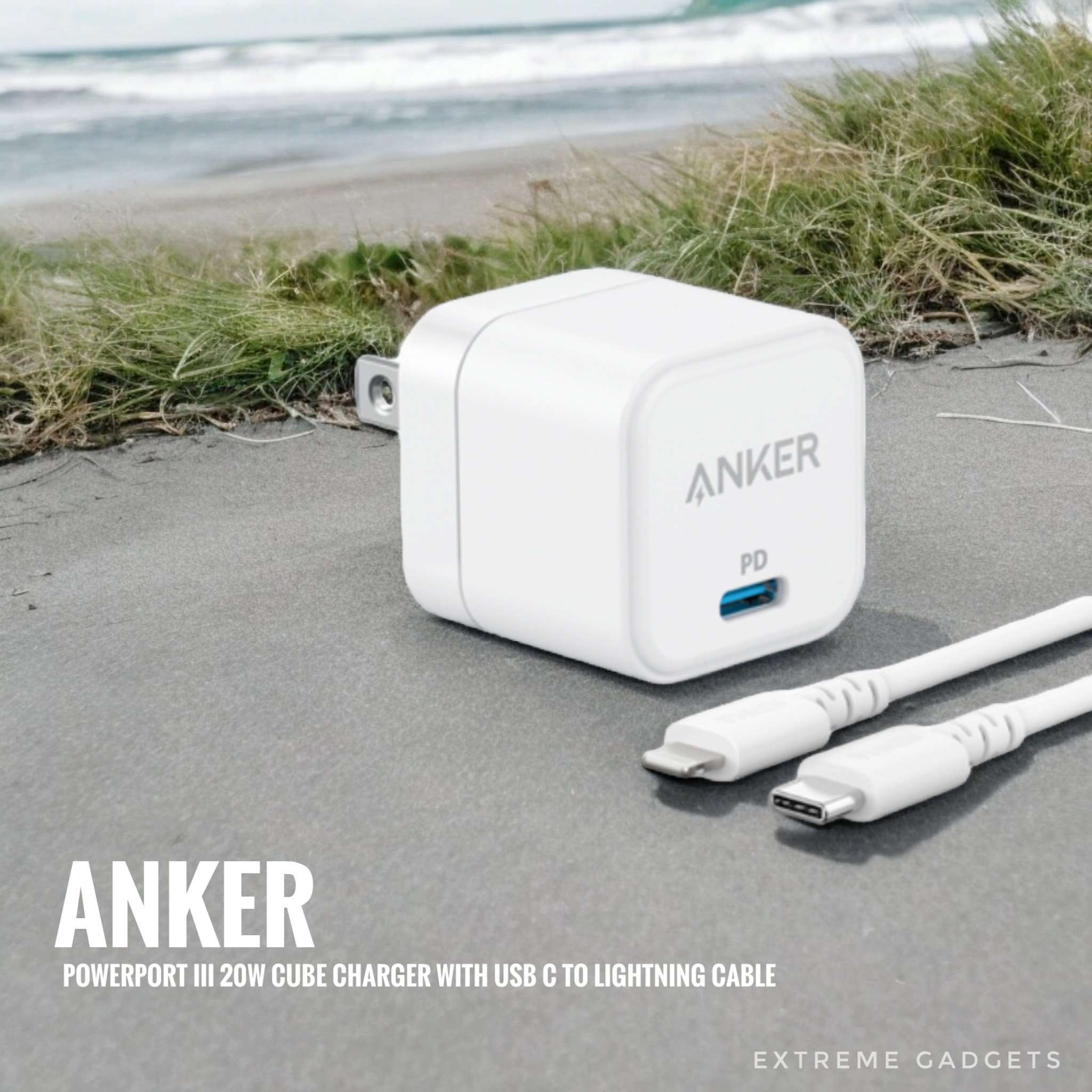 Anker PowerPort III 20W Cube Charger with USB-C to Lightning Cable – Compact, fast, and safe charging for iPhone and other USB-C devices.