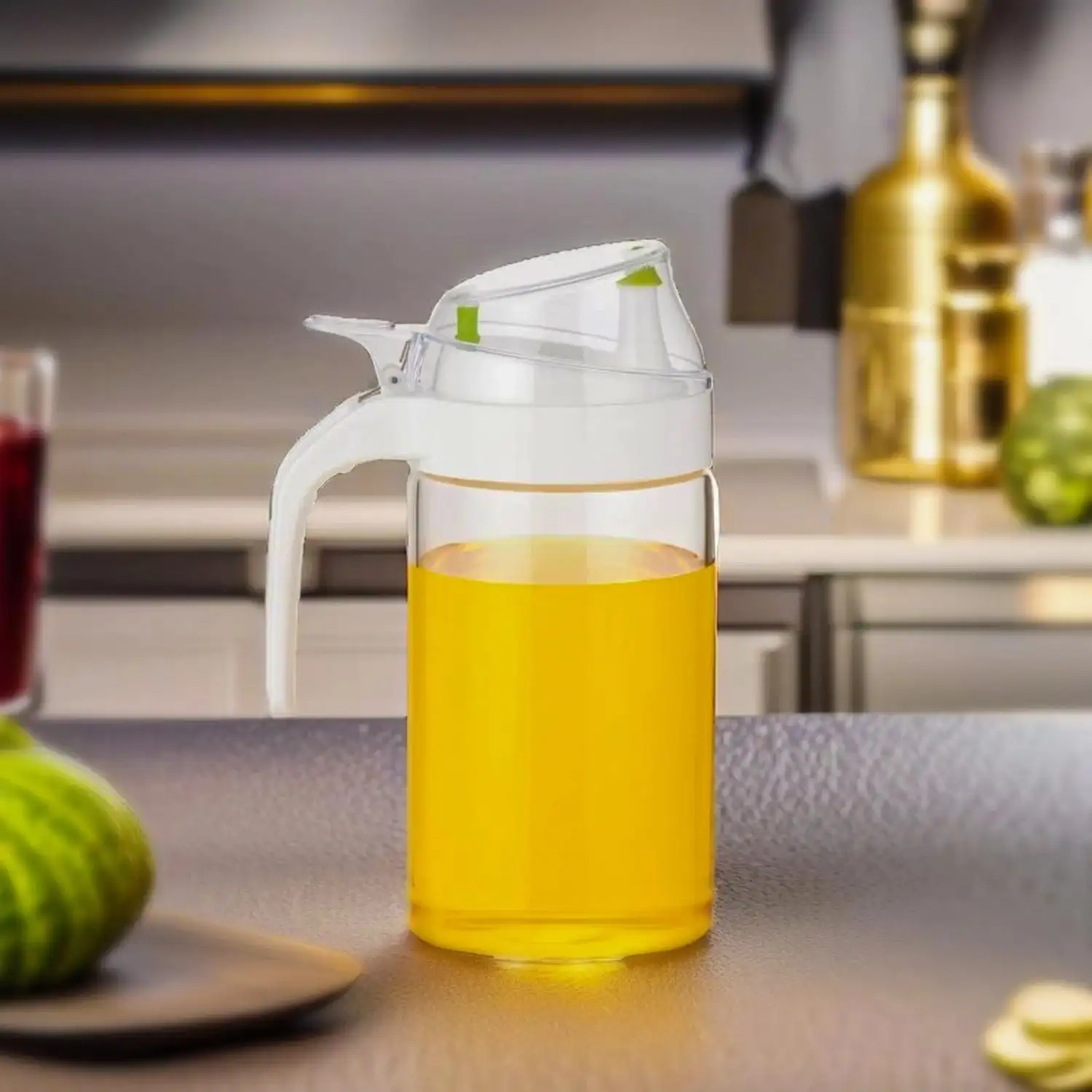 borosilicate glass oil dispenser with white anti-drip spout and oil control design. Perfect for clean, precise pouring in the kitchen.