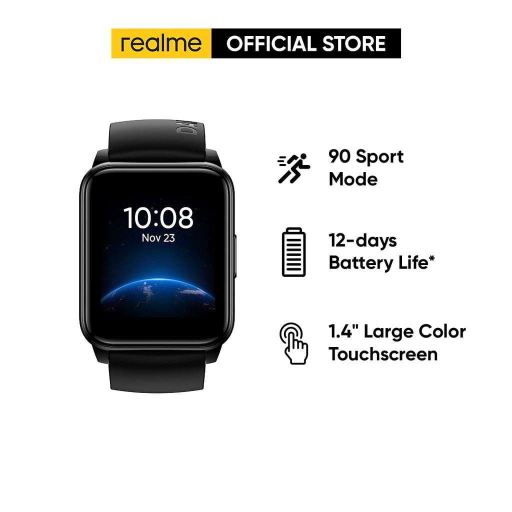 Realme Watch 2 with 1.4" touchscreen, 90 sports modes, SpO2 and heart rate monitoring, long battery life, and IP68 water resistance. Smart fitness meets style.