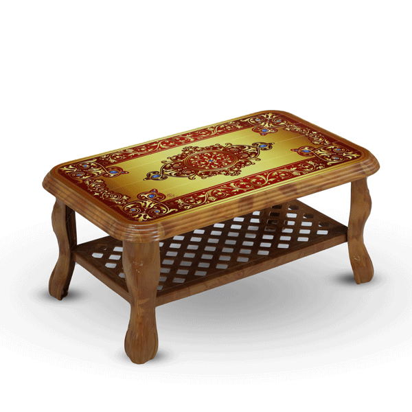 A stylish and compact sofa table featuring a crown print design, perfect for adding a touch of elegance to your living space.