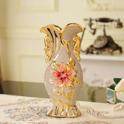 Elegant ceramic flower sculpture with a shiny gold-polished finish. A luxurious decorative accent for tables, shelves, or centerpieces in living rooms, bedrooms, or offices.
